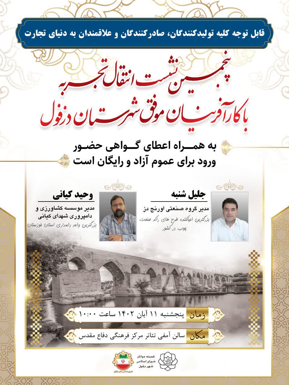 پنجمین ویژه برنامه نشست انتقال تجربیات کارآفرینان موفق دزفول