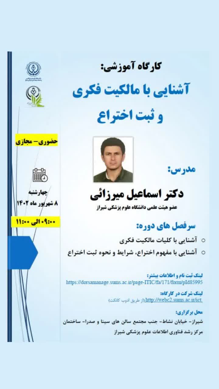 کارگاه آموزشی؛ آشنایی با مالکیت فکری و ثبت اختراع